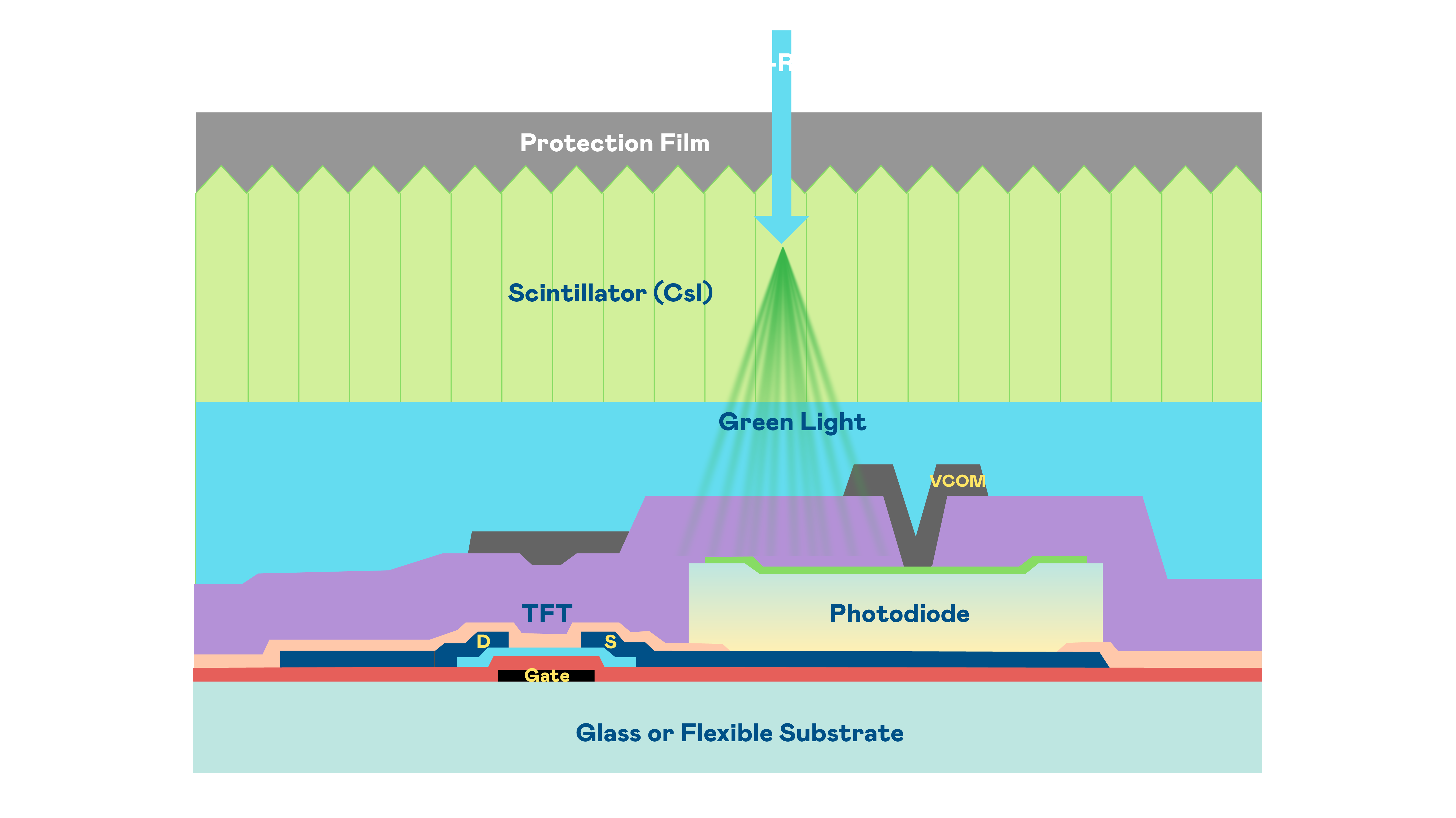 The product technology categories include glass and flexible imaging sensor arrays, a-Si and IGZO TFT technology platforms, as well as X-ray sensor module products that combine scintillator layers with readout chip-on-film (COF) technology.
